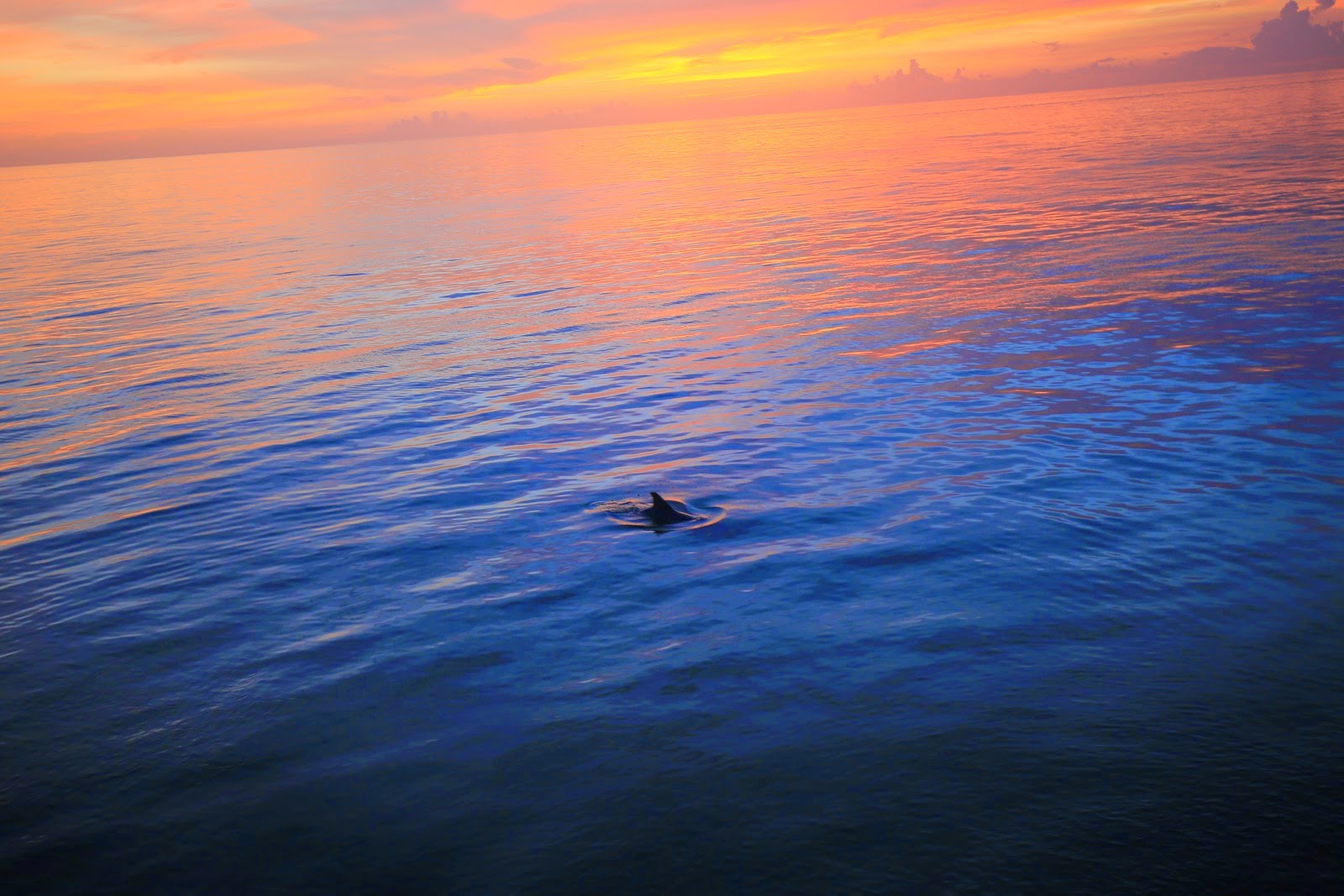 Le soir, tout le monde remballe et marche ensuite jusqu’au ponton de la ville pour apprécier le coucher de soleil. On suit la meute en ayant pris soin de repasser par le parking pour récupérer les appareils photos et se lancer dans un concours. Si mon reflex équipé de son nouveau grand angle part clairement favori, Adèle maîtrise désormais parfaitement son compact baroudeur et s’éclate avec ses filtres créatifs ! Donc match nul… Un dauphin passant et repassant sous la passerelle, pointant seulement le bout de son aileron, finira ce spectacle bucolique avant que la foule ne se disperse pour rejoindre les restaurants du quartier historique.