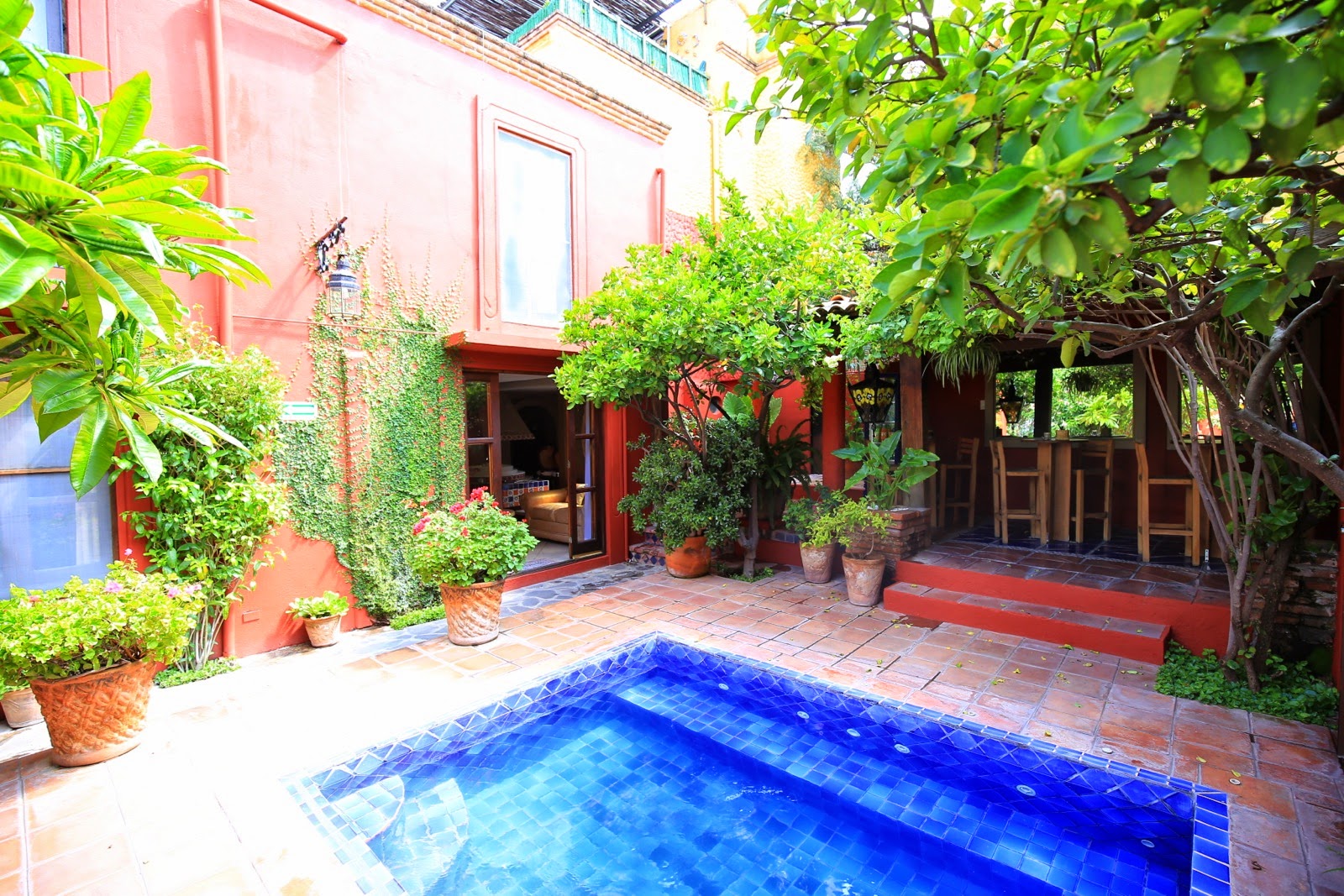 Adèle nous a trouvé un bed & breakfast à quelques blocs du centre historique dont la façade colorée mais très simple avec uniquement une porte d’entrée et un garage, dissimule avec brio l’intérieur sublime de la propriété. Une fois la porte franchie, on découvre une charmante maison de ville possédant une large terrasse fleurie avec un bassin pour se rafraîchir du climat caniculaire. L’intérieur est tout aussi soigné que le jardin et on s’y sent immédiatement très bien.