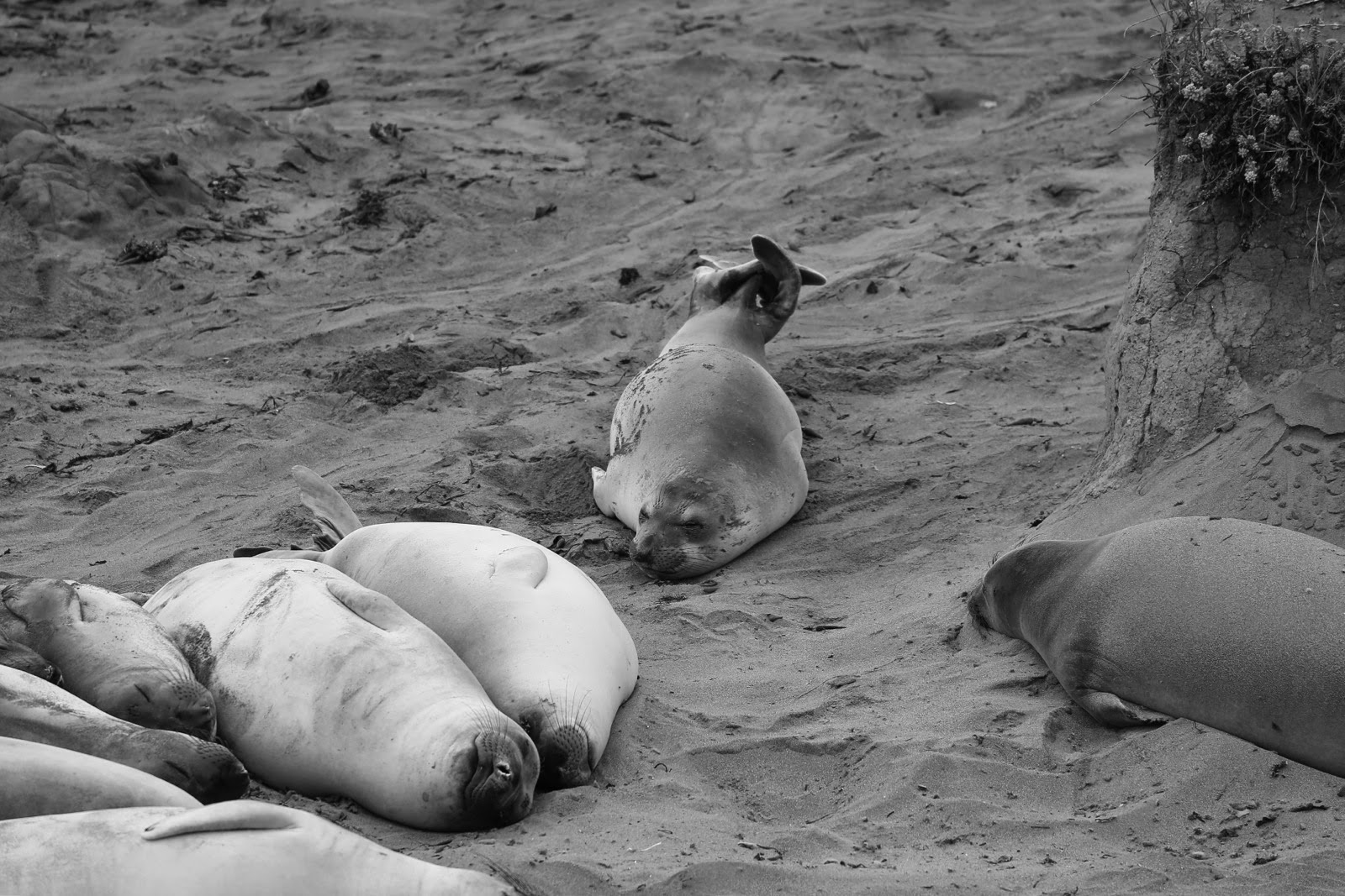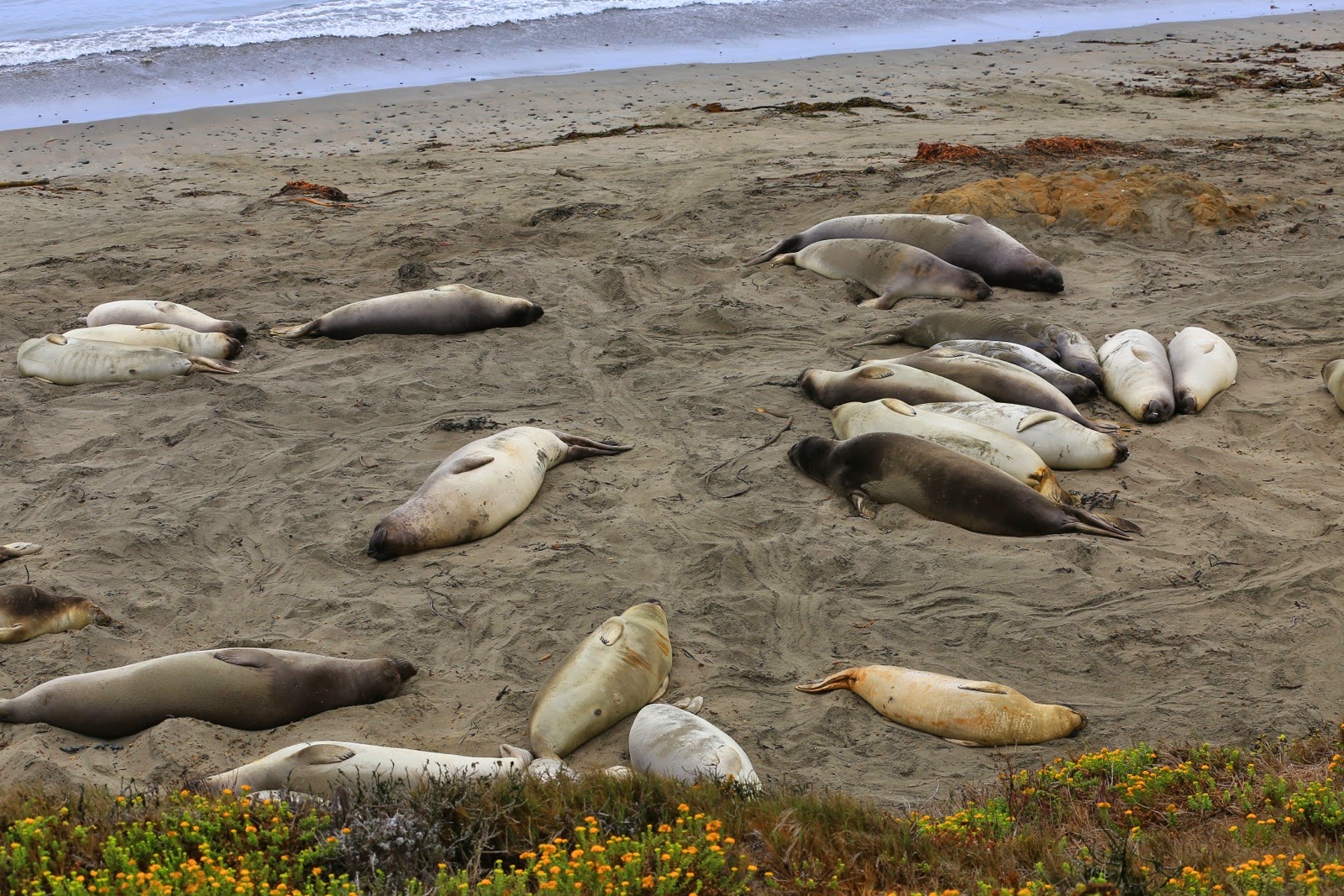 En continuant sur la PCH en direction de San Francisco, les paysages côtiers romantiques succèdent aux plages sauvages de sable blanc où s’échouent de lymphatiques lions de mer. Dès qu’on se rapproche de la côte, le ciel devient grisâtre et le bleu s’évanouit derrière les nuages avec parfois même une brume qui masque l’horizon.