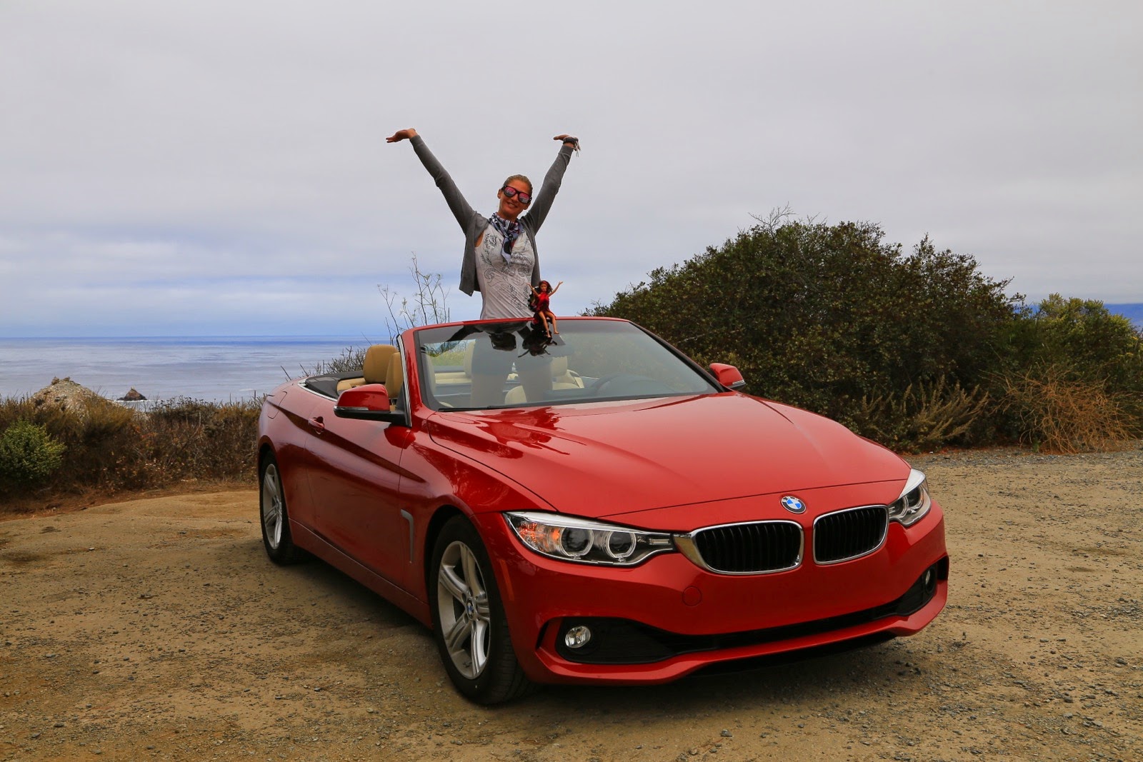 Lors de la réservation j’avais précisé que nous étions en honeymoon et expressément demandé une Ford Mustang ou une Chevrolet Camaro cabriolet pour vivre comme il se doit ce road trip au pays de l’oncle Sam. Evidemment, aucun des 2 modèles n’était disponible à cette heure-ci mais la jeune fille me promet qu’une Camaro sera disponible ce soir après 22h. En attendant, elle nous a surclassé dans la catégorie premium et nous disposons d’une BMW 428i décapotable “full option“ y compris le GPS auquel je n’avais pas souscrit ! C’est plus que pas mal mais pas très exotique !!!