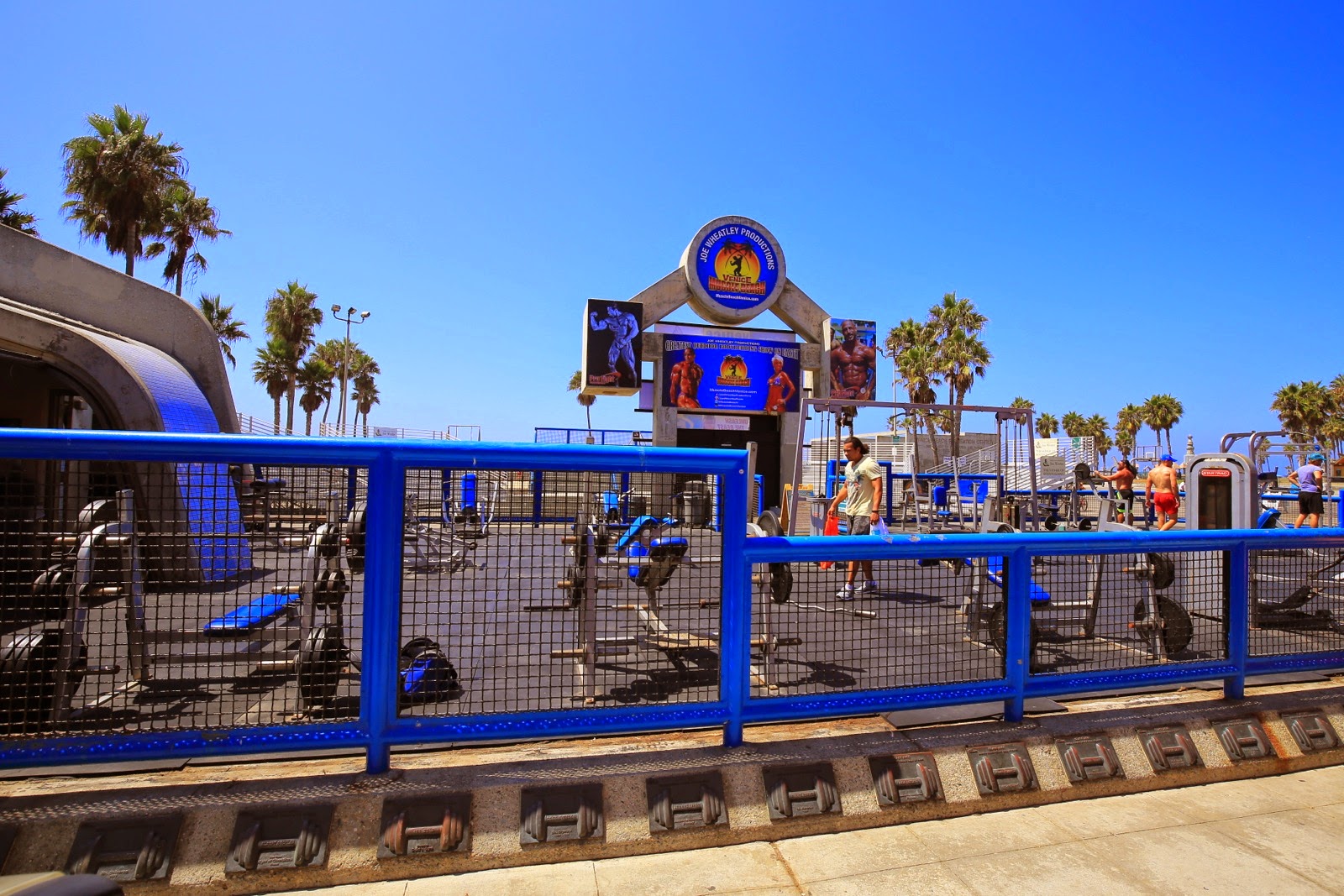 Le lendemain, on flâne sur la promenade de Venice Beach en s’imprégnant de l’ambiance assez particulière où se mélange un large éventail de gens : des joggeurs en lycra tentent de se faufiler au milieu de la foule, des pépètes en bikini font du roller, des rappeurs fourguent leur CD, des gros balaises soulèvent de la fonte dans des “salles“ de muscu à ciel ouvert, des familles nombreuses débarquent avec tente et glacière et bien sûr des centaines de touristes comme nous !