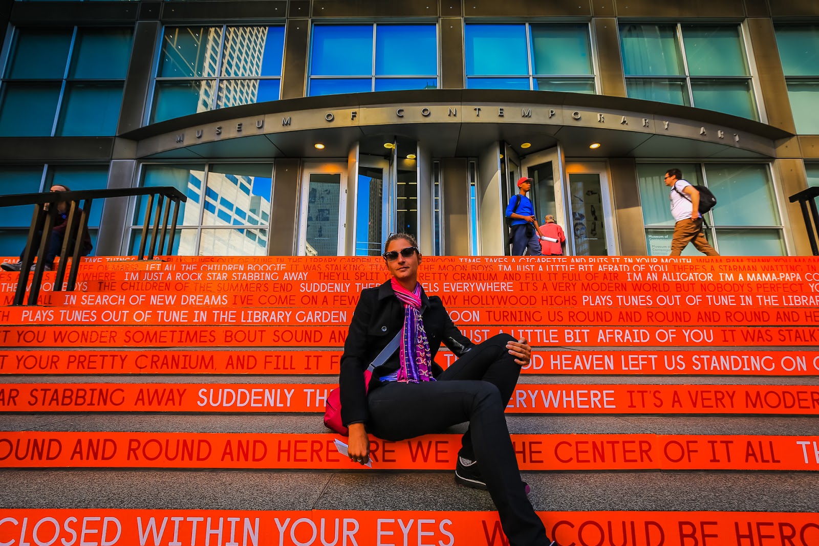 De retour sur le planché des vaches, on file au Museum of Contemporary Art. Pas qu’on soit des gros fans d’art contemporain mais c’est surtout qu’il y a la première de l’exposition David Bowie Isconsacrée aux 50 années de carrière de l’icône pop britannique. Après Londres en 2013, c’est la seule date américaine et on est très content de se trouver au bon endroit, au bon moment… Bonne nouvelle pour les Français, la rétrospective est depuis programmée à Paris en mars 2015.