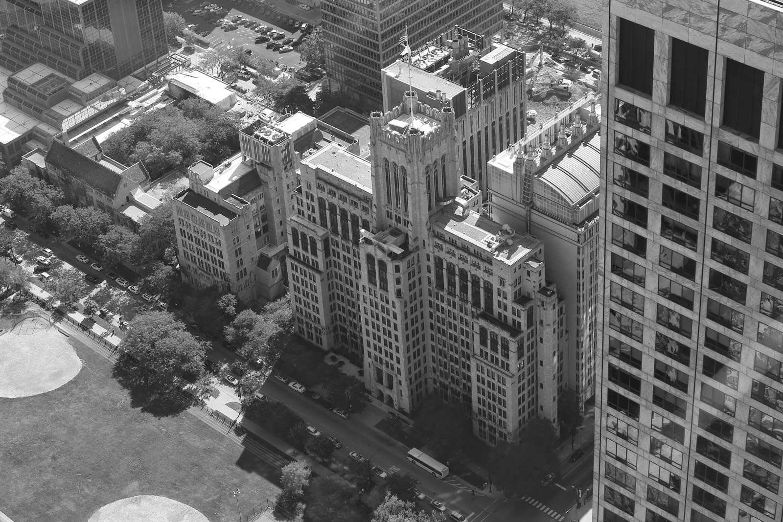 Le meilleur moyen de visiter Chicago est encore de prendre le subway qui possède l’énorme avantage d’être aérien sur bien des sections. Il forme une boucle, appelée The Loop, qui tourne au pied des gratte-ciels à hauteur du 3 ou 4ème étage. Débarquant sur Jackson Blvd, on entame une marche, les yeux rivés en l’air devant des bâtiments qui sont tous plus impressionnants les uns que les autres (Chicago Board of Trade, Continental Illinois Bank Building, Home Insurance Building…).