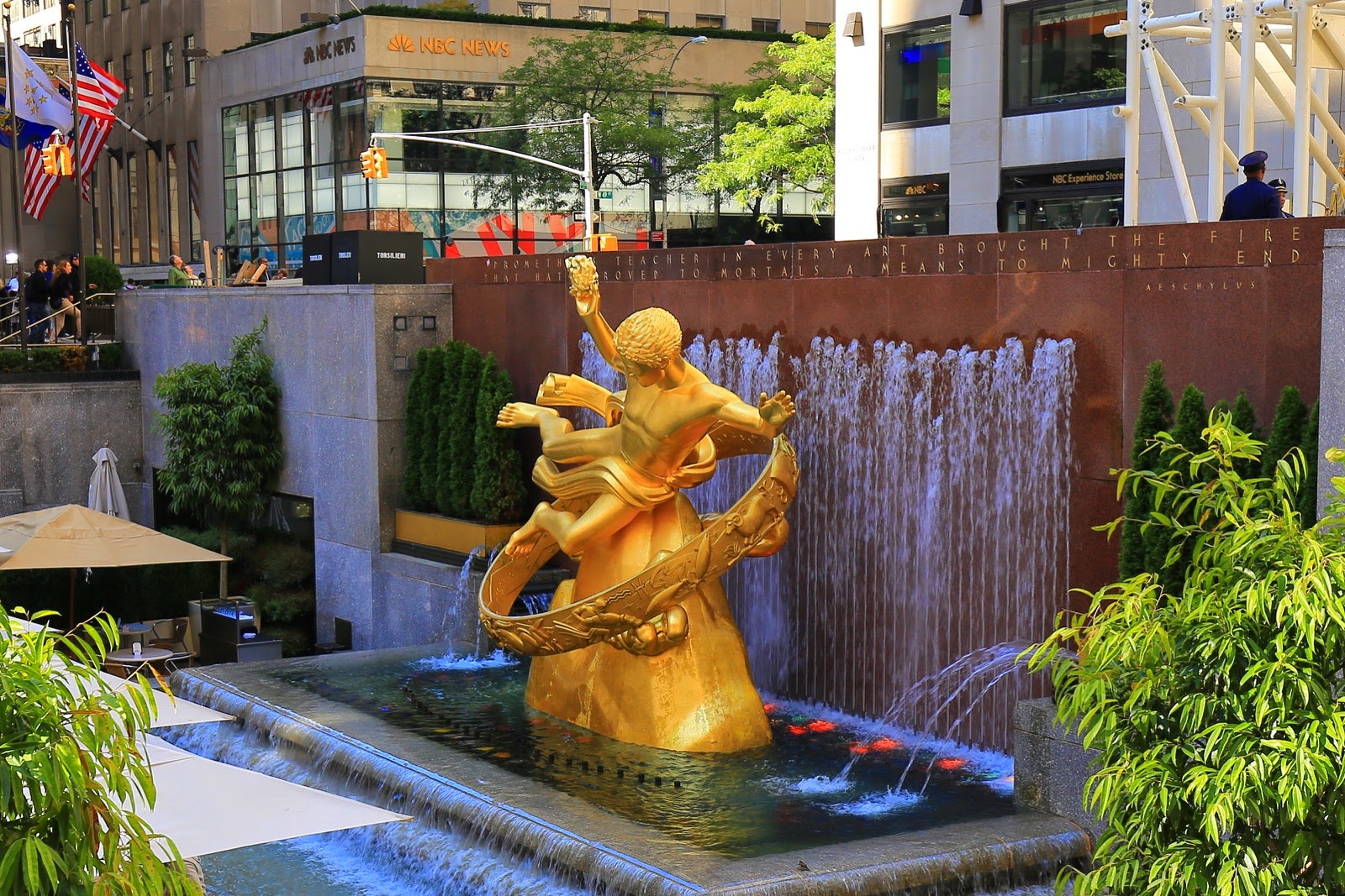 Le lendemain tout va mieux, le soleil est là et ça tombe bien car on a prévu de monter au sommet du Rockfeller Center pour voir la Grosse Pomme d’en haut. Tout comme à Chicago, on a l’embarras du choix dans les terrasses panoramiques avec évidemment l’incontournable Empire State Building. Entre les 2 gratte-ciels “Art déco“, on préfère le GE Building, moins haut (266 m et 70 étages seulement !!) mais qui offre justement une vue magnifique sur son voisin de 381 m (443 avec l’antenne) avec en toile de fond, le sud de Manhattanet la tour la plus haute des Etats-Unis, le One World Trade Center (541 m avec l’antenne).