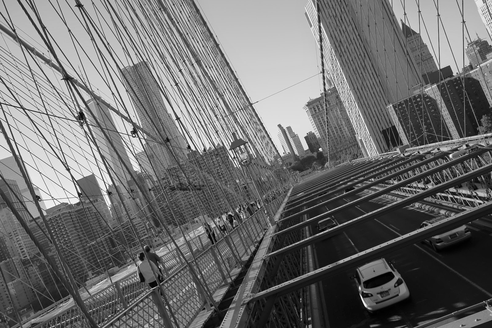 Le Brooklyn Bridgeest un peu plus à l’Est et c’est la cohue sur la bande réservée aux piétons. De l’autre côté de la ligne blanche, les cyclistes et les joggers passent à fond et il vaut mieux faire attention où l’on marche sous peine de se faire violemment bousculer.