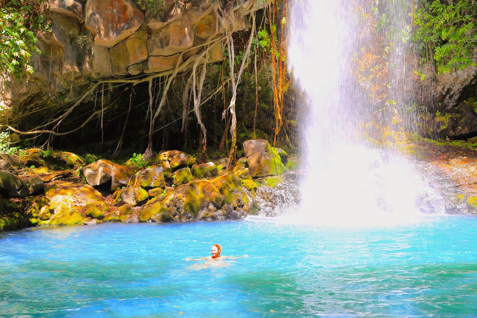 Une fois sur les énormes rochers qui bordent le minuscule lac, j’hésite à sortir mon appareil photo ou à enfiler mon maillot de bain. Adèle a vite choisi et va tester l’eau la plus fraîche qu’on ait jamais rencontrée au Costa Rica. Elle est également ultra transparente et on distingue aisément le fond du bassin.