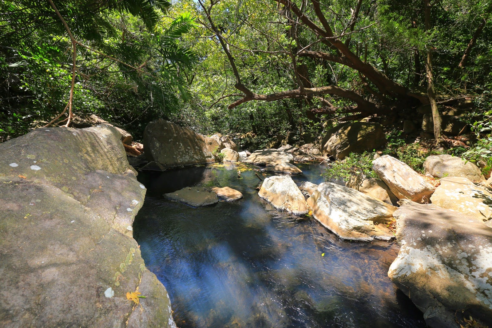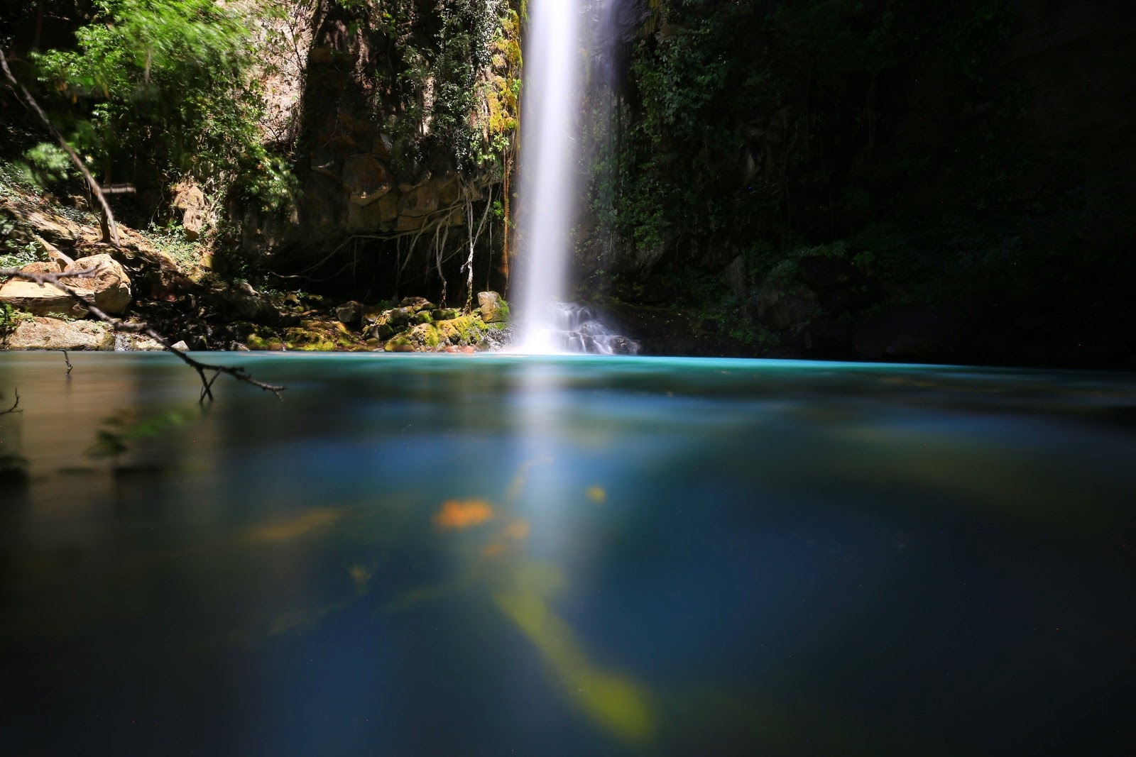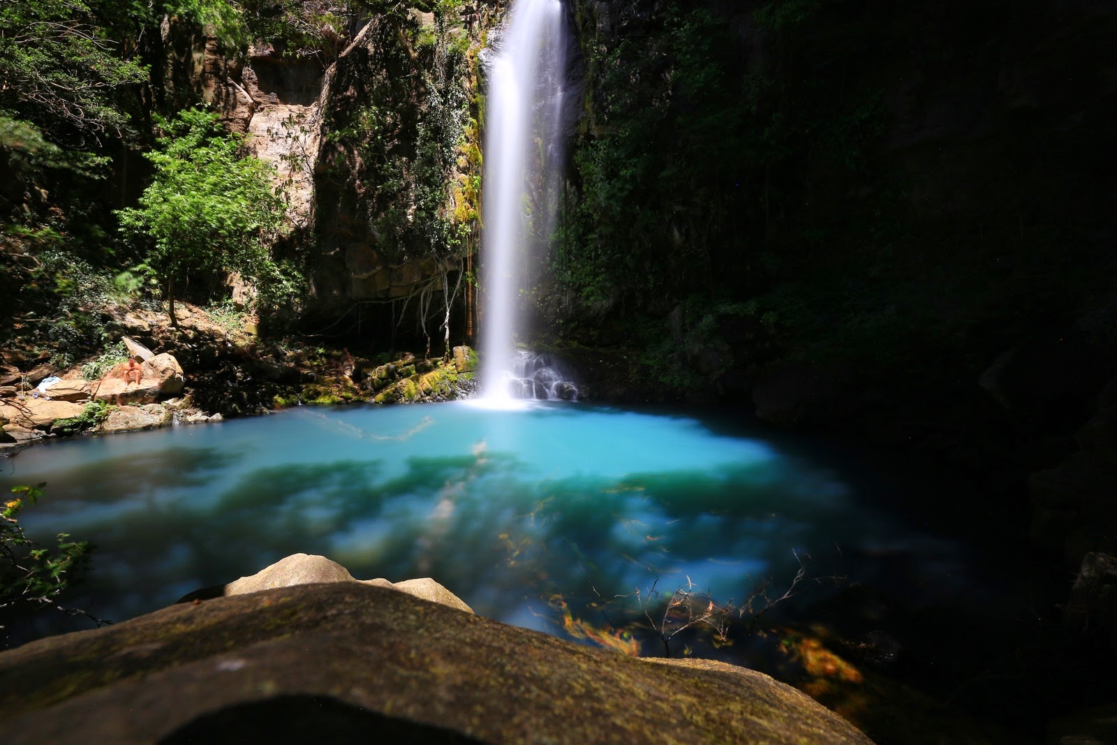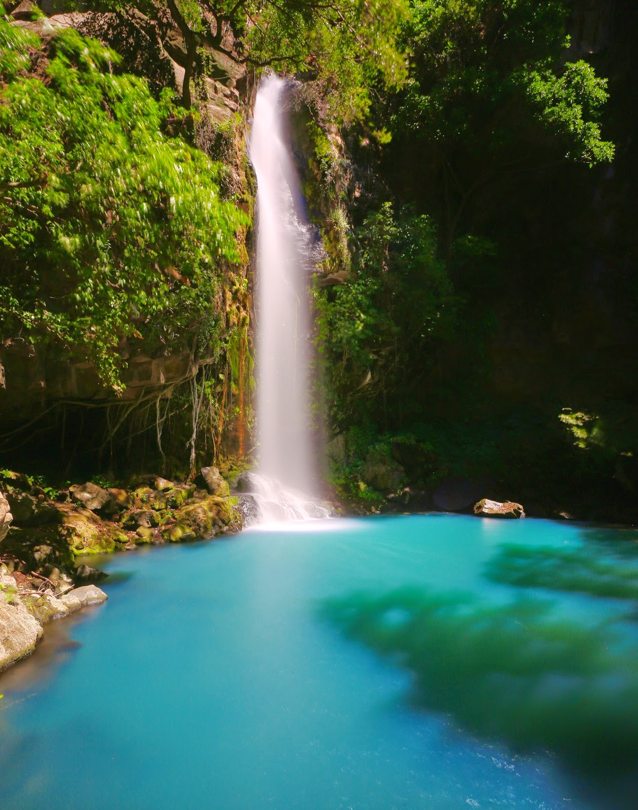 Avant même d’être au bord du rio et d’apercevoir la cascade, le bleu intense du bassin nous saute aux yeux à travers la végétation, pourtant très dense.