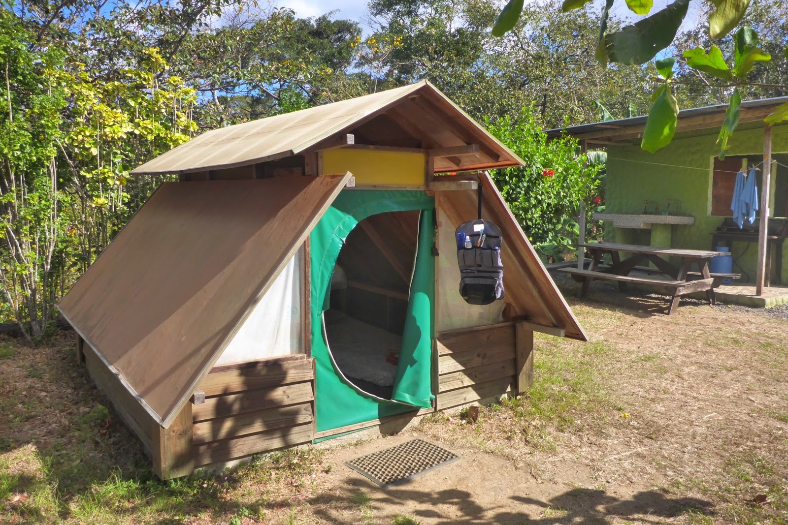 En arrivant au village du Curubandé, Adèle m’annonce qu’on va passer les 3 nuits sous une tente ! En y repensant, cela fait depuis la Nouvelle-Zélande en avril dernier, que nous n’avions plus fait de camping. Ce type d’hébergement n’est pas très répandu au Costa Rica. On a bien vu quelques tentes de backpackers à Montezuma ou à Brasilito, tout près de Tamarindo, mais c’est tout !