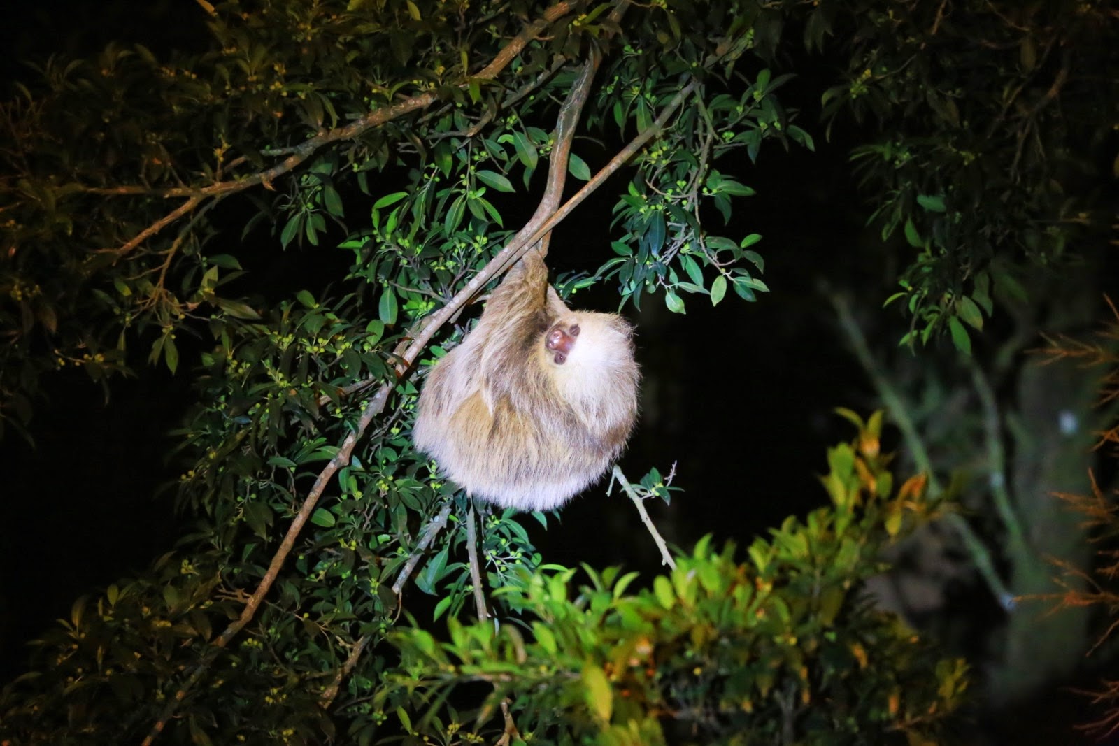 Pendant ces 3 mois au Costa Rica, on a vécu quasi en permanence au contact des animaux. C’est presque la routine de prendre son petit-déj en entendant les singes hurleurs qui sautent de branche en branche dans la canopée. Des coatis scrutent la moindre miette qui tombe de ta table ou attendent un moment d’inattention pour chiper ton paquet de chips. Le matin il n’est pas rare de se faire réveiller par le bruit assourdissant d’un iguane, tombant sur la tôle ondulée du toit de la chambre, sous-estimant la résistance d’une branche à son poids ! C’est d’ailleurs assez stupide comme bestiole, surtout quand il s’agit de traverser la route et il est très fréquent d’apercevoir leur carcasse sur la chaussée en attendant l’arrivée des charognards. Je sais, c’est glauque mais c’est la nature…