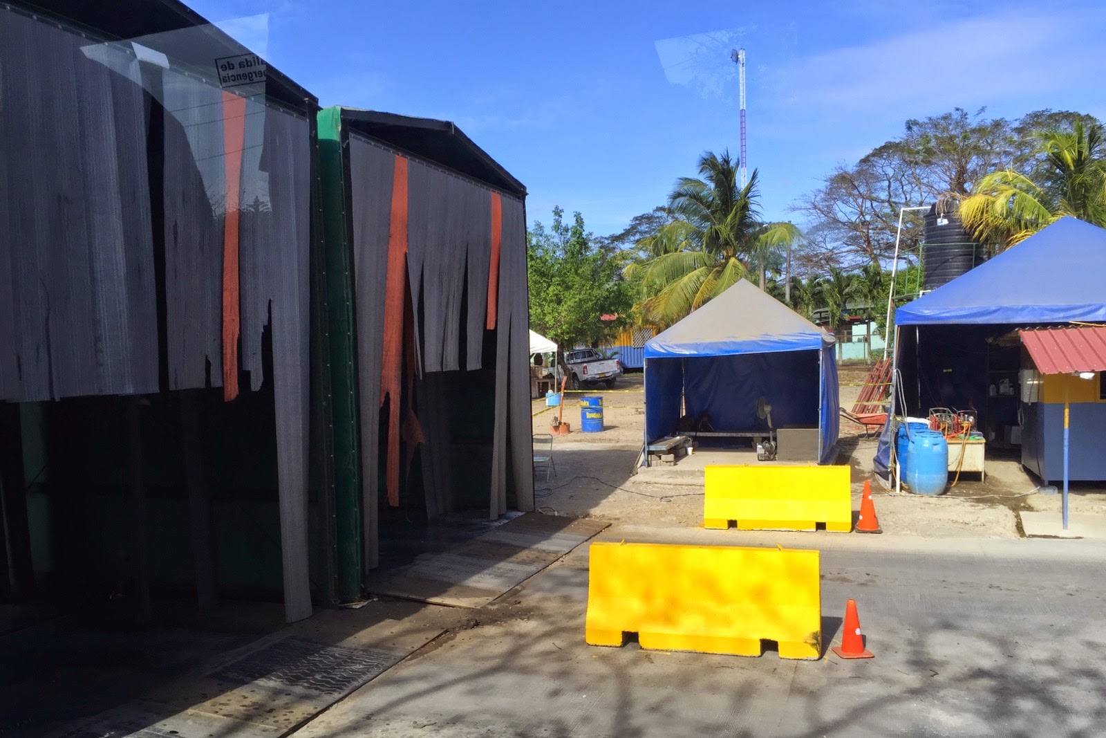 Pour s’y rendre, on emprunte un Tica Bus en provenance de San José mais dans lequel on ne grimpe qu’à Liberia après avoir rendu notre voiture de location. La frontière n’est pas bien loin mais son passage est un amusant spectacle qu’on avait oublié depuis notre traversée en bus de la Cordillère des Andes, entre l’Argentine et le Chili.