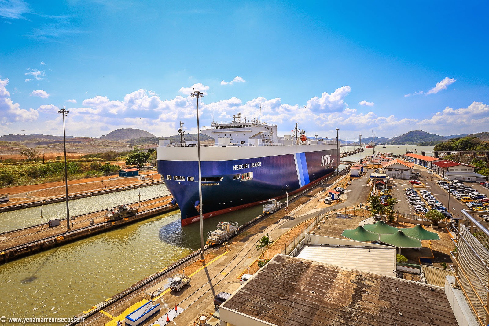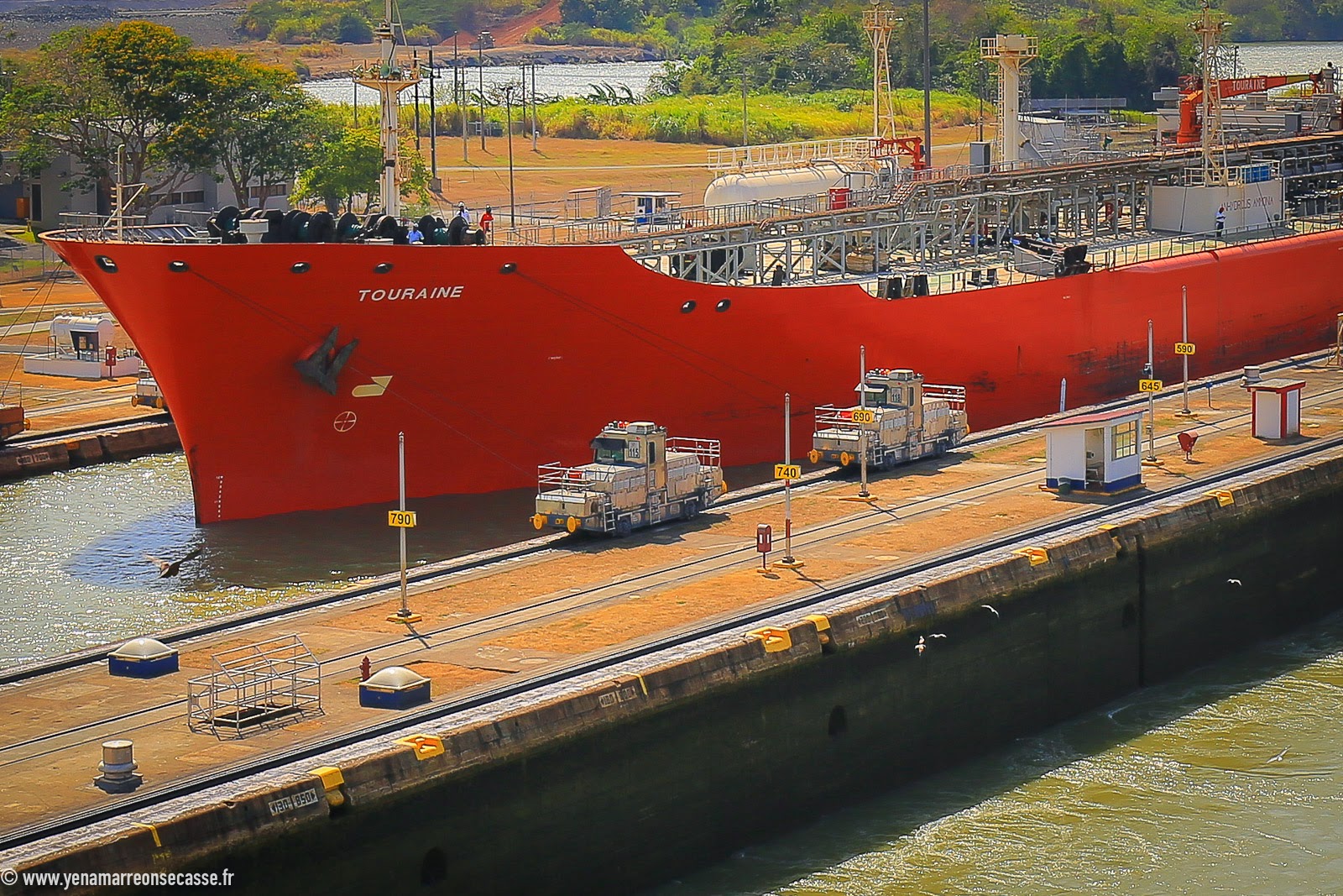 La visite se termine sur la plateforme supérieure où l’on peut observer les navires géants évoluant dans l’écluse, tirés de chaque côté par des locomotives. Pour s’assurer du spectacle qui vaut d’être vu, renseignez-vous sur les horaires de passage. Le billet d’entrée est valable toute la journée et après la visite, on peut sortir déjeuner ou faire du shopping au Albrook Mall juste à côté pour revenir lors de l’arrivée d’un bateau. On a pu ainsi voir deux tanker et un porte-véhicules.