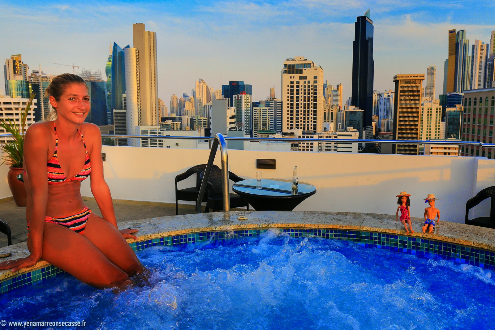 Arrivant à 5h du mat’, on n’a pas observé immédiatement l’architecture de la ville de Panama. On a bien contourné de nombreux gratte-ciels dont on ne voyait pas la pointe à travers la vitre de notre taxi nous emmenant de la gare routière d’Albrookau quartier de Marbella. Notre hostel se situe dans un minuscule bloc de quelques pavillons individuels, contrastant avec les immenses tours voisines de verre et d’acier qui sont pour la plupart des sièges d’établissements bancaires.
