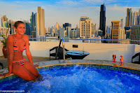 Niveau hébergement, on a testé plusieurs formules puisqu’après nos 2 nuits en dortoirs, on s’est offert une jolie chambre, upgradée en suite, à l’hôtel Tryp by Wyndham. Après 3 mois d’hostels et autres B&B, on apprécie une “vraie“ chambre offrant tout le confort. On profite surtout de la piscine sur le toit et de la vue imprenable sur la ville, impressionnante le jour, magique la nuit.