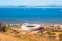 D’un côté l’océan, la ville, le port, le stade et au loin les plages de sable blanc de Table View. De l’autre, les 2 formations rocheuses emblématiques de la ville, Lion’s Head (669 m) et Table Mountain(1086 m).