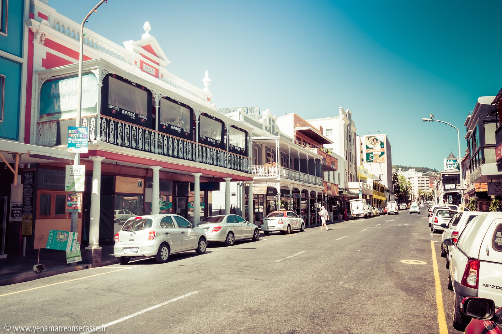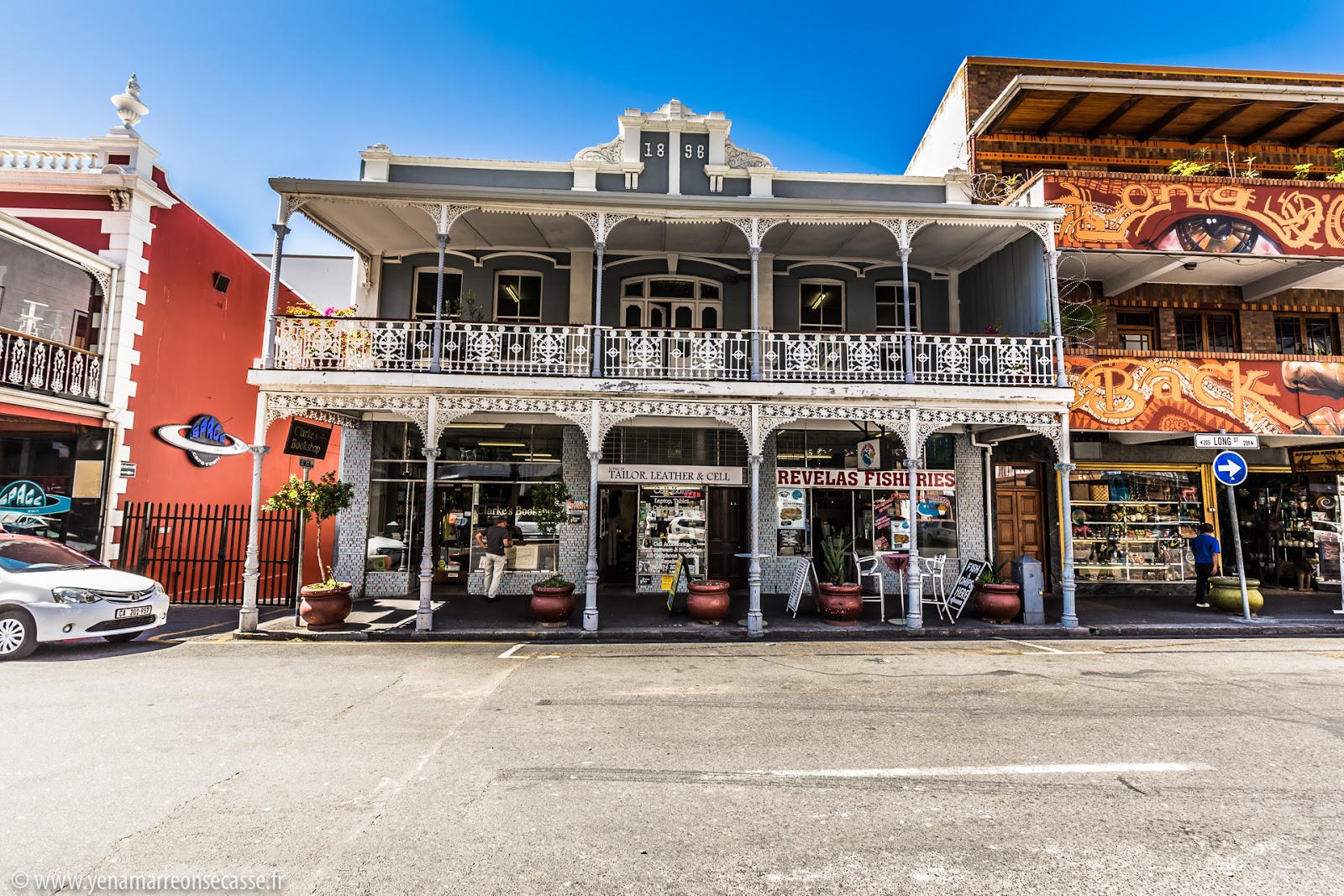 De ce point d’observation, on assimile la topographie des lieux et des quartiers qui forment le City Bowl, cet “amphithéâtre“ naturel formé entre les montagnes et l’océan. En redescendant vers Bo-Kaap, une des premières rues que l’on traverse est Long Street. L’architecture des immeubles victoriens avec leurs balcons en fer forgé nous transporte immédiatement une année en arrière, lors de notre visite de la Nouvelle Orléans. On adore et on déambule nonchalamment devant les vitrines des bars, des restaurants et autres hébergements pour backpackers.