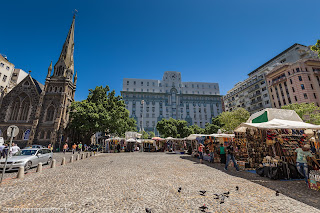 Deux blocs plus loin, on découvre des immeubles aux façades Art Déco, notamment autour de Greenmarket Square qui accueille tous les jours un marché d’artisans et de souvenirs. Les vendeurs ne sont pas très agressifs et on se fait surprendre par certains Congolais qui nous parlent immédiatement en français. Ça se voit tellement ou c’est notre french accent ???