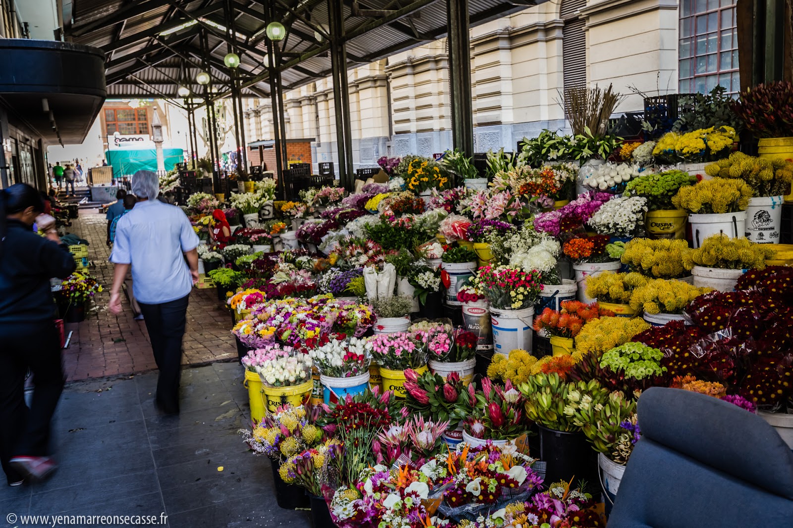 Un peu plus bas, on passe devant les marchands de fleurs de Shortmarket Street et d’Adderley St. On y trouve des bouquets magnifiques et des assortiments de variétés et de couleurs incroyables. Dommage qu’on n’ait pas de vase !!