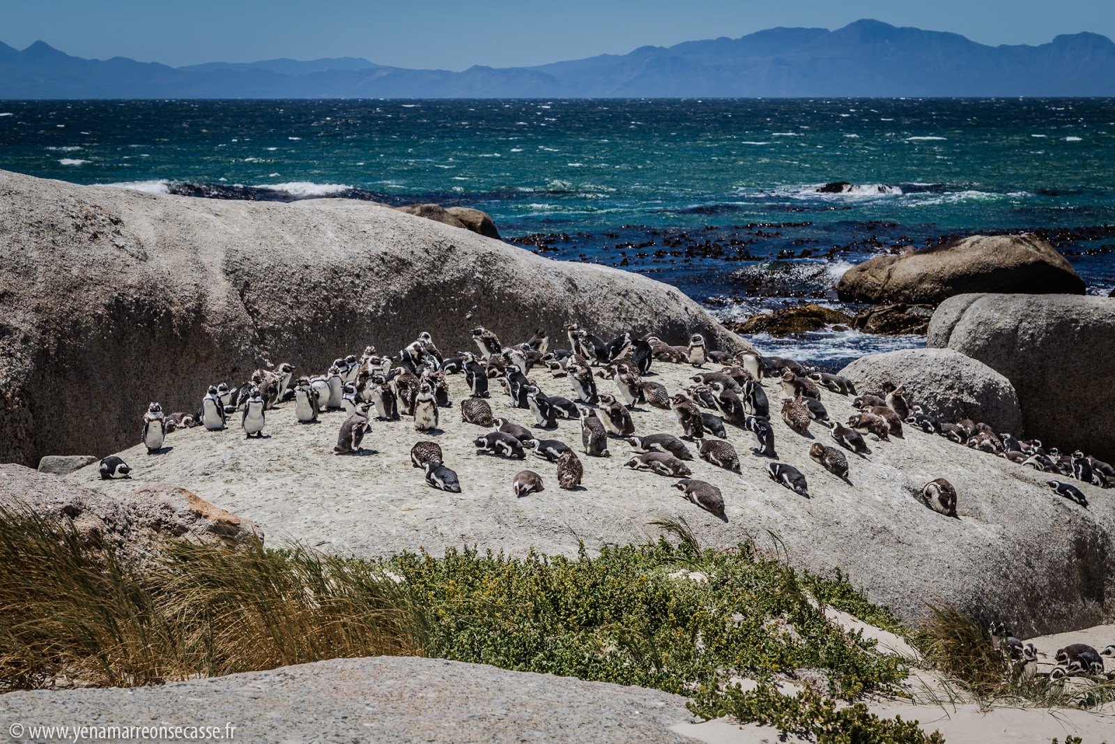 Simon’s Townest surtout connue pour sa fameuse plage de Boulders transformée en partie en parc national où l’on peut voir une colonie de 2200 manchots. A cette époque ces charmantes peluches noires et blanches perdent leur duvet d’hiver et le sable se recouvre d’un manteau de coton ! Depuis 10 ans, le nombre de manchots est en nette diminution car leur nourriture, essentiellement des sardines et des anchois, vient à manquer dans les eaux de la péninsule. Les scientifiques se battent encore pour déterminer qui, du réchauffement climatique ou de la sur-pêche, est responsable de la disparition de l’espèce. A moins que ce ne soit les 2 ! Le nombre de couples reproducteurs a chuté de 90% dans les colonies sud-africaines au nord du Cap, passant d’environ 32.000 à quelque 3.000 et vu l’ampleur de la disparition, les autorités envisagent de déplacer les manchots…