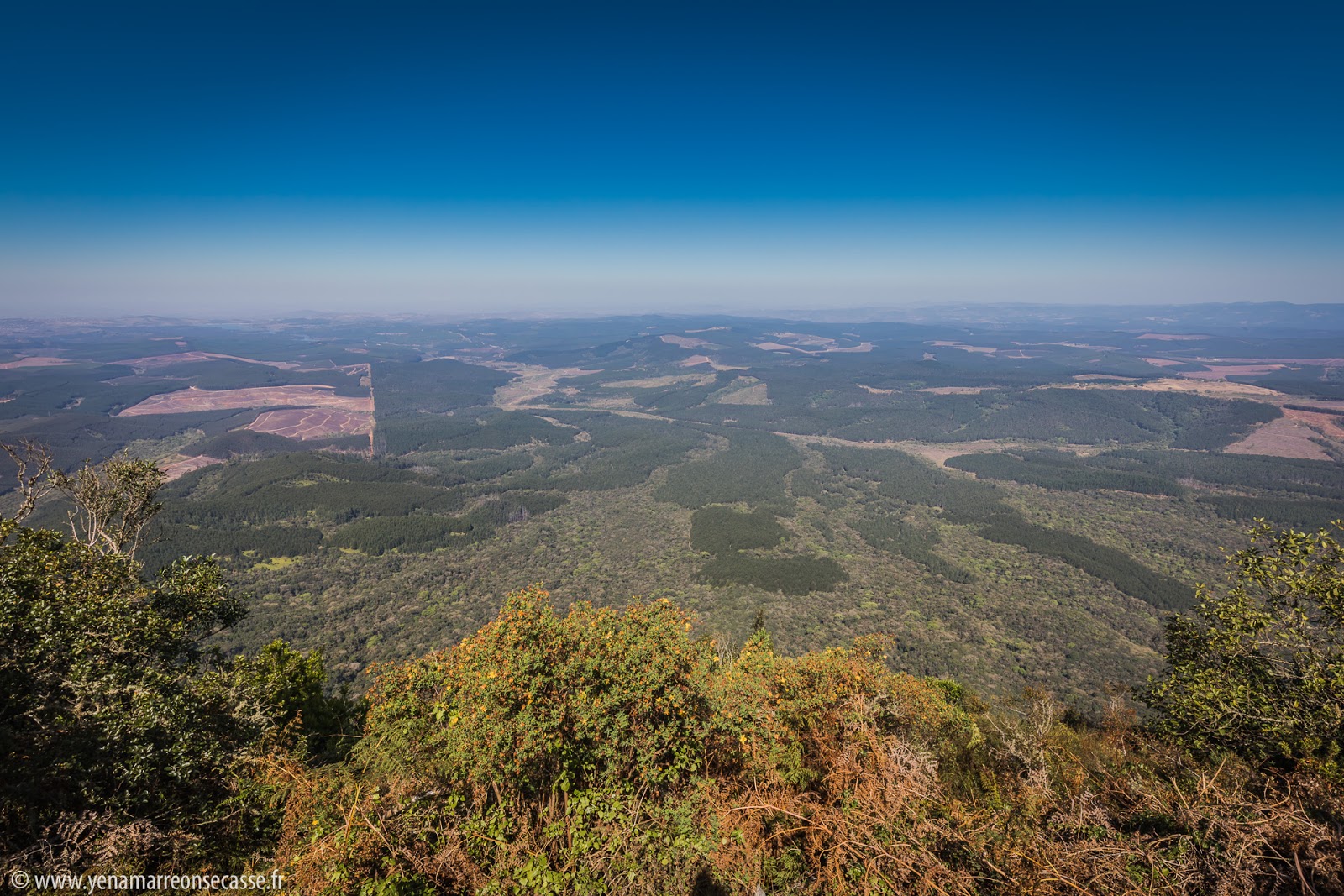 5 minutes plus tard, on atteint le site de God’s Window. Après le parking, un premier sentier vous emmène de plateforme en plateforme où l’on peut jouir d’une vue plongeante extraordinaire sur la plaine (lowveld), 700m plus bas !!Plus haut, un deuxième sentier nous promène dans une inattendue forêt tropicale qui contraste totalement avec les collines de pins qu’on a traversé jusqu’à présent. Après l’humidité de cette forêt, on débouche sur un plateau totalement cramé et on s’étonne de trouver encore certains arbres en flamme. Écobuage ou incendie accidentelle, on a oublié de poser la question au gardien en partant !
