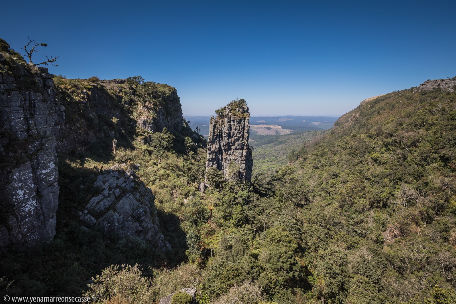 En retrouvant la R532, après le village de Graskop, nous faisons un court arrêt pour observer le Pinnacle Rock, une formation rocheuse au milieu d’un canyon avec la plaine en arrière-plan. Une sorte de mise en bouche pour les points d’intérêt qui vont suivre…